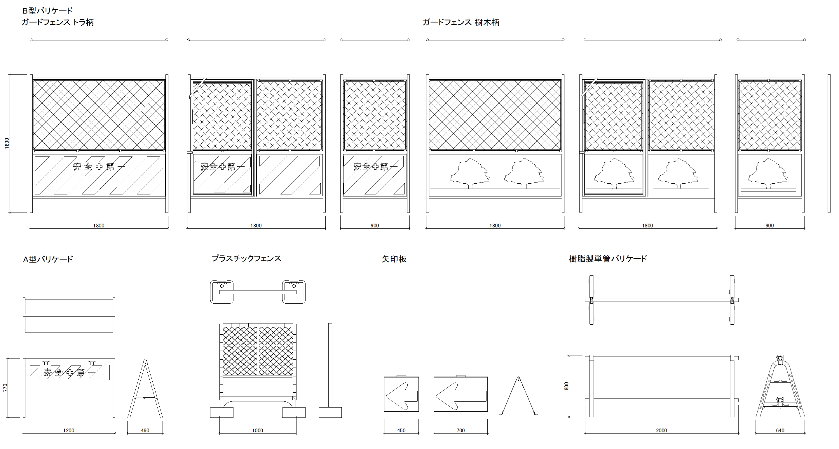- B型バリケード、工事用ガードフェンスW=1800(樹木柄)