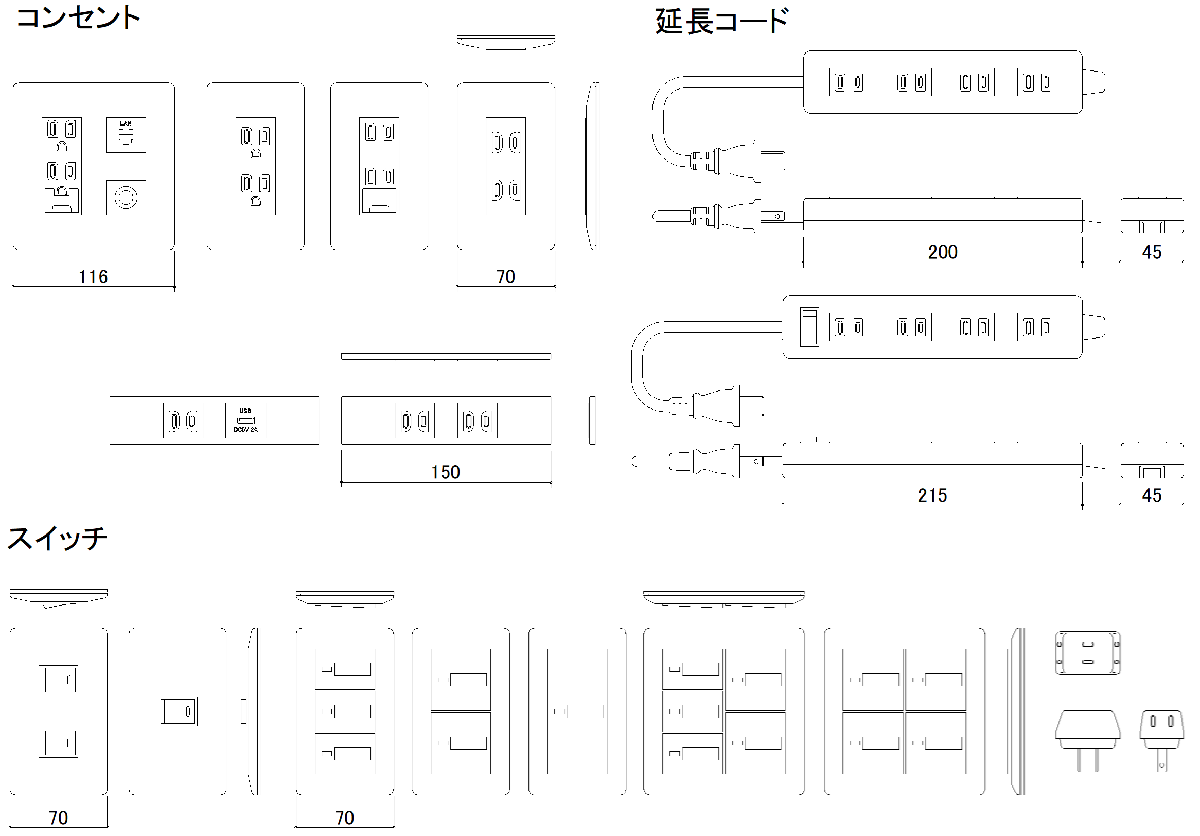 CADデータ画像-コンセント・スイッチ