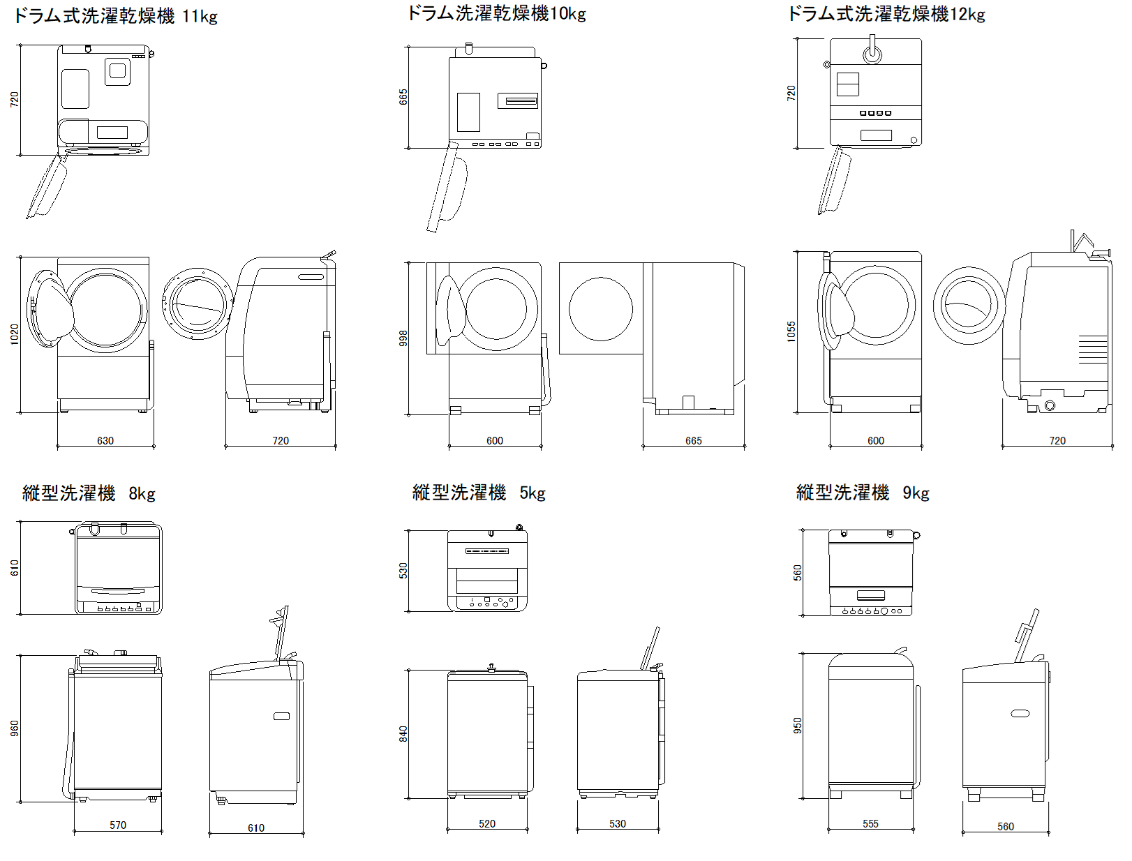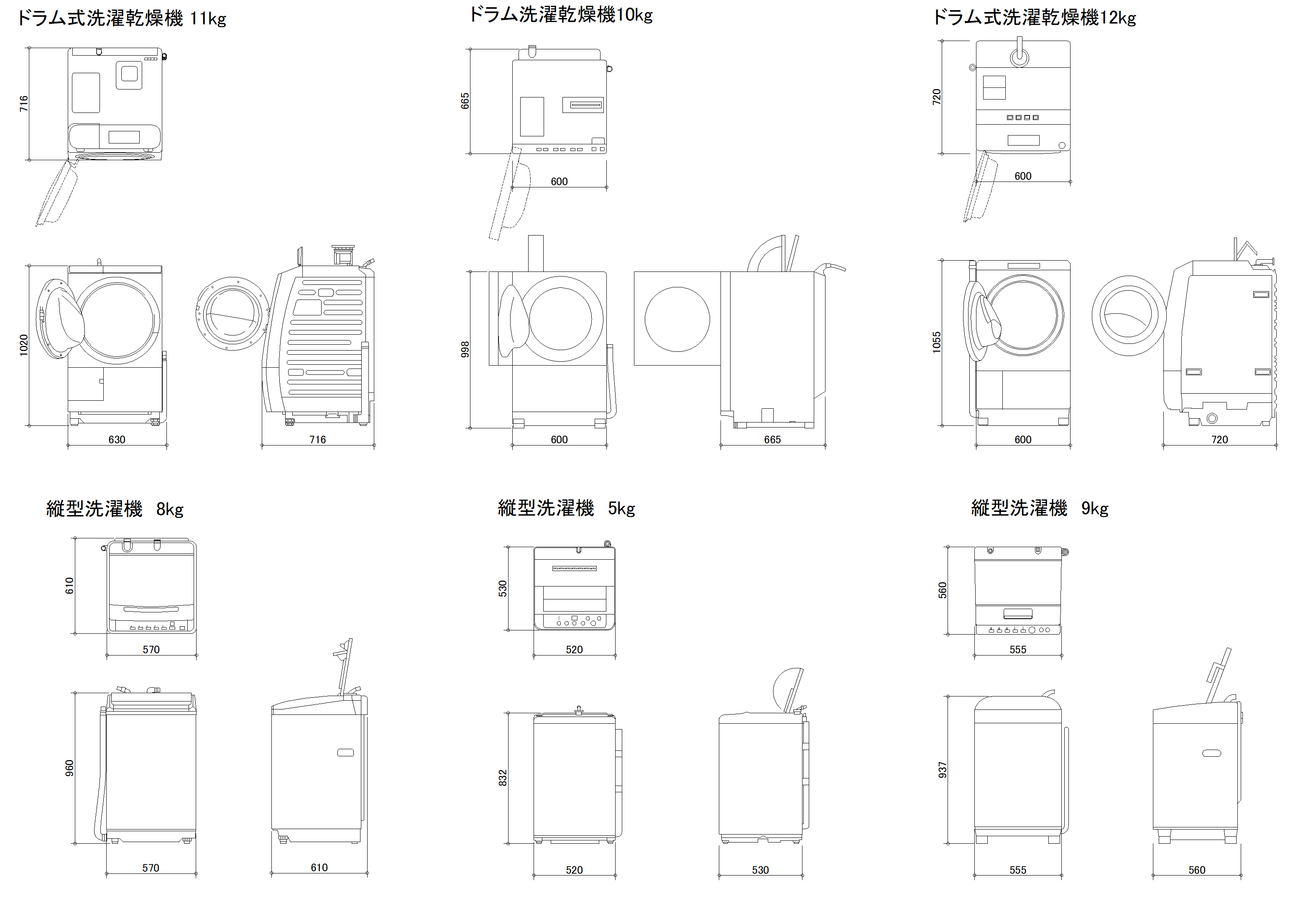 洗濯機・洗濯乾燥機 CADデータダウンロード