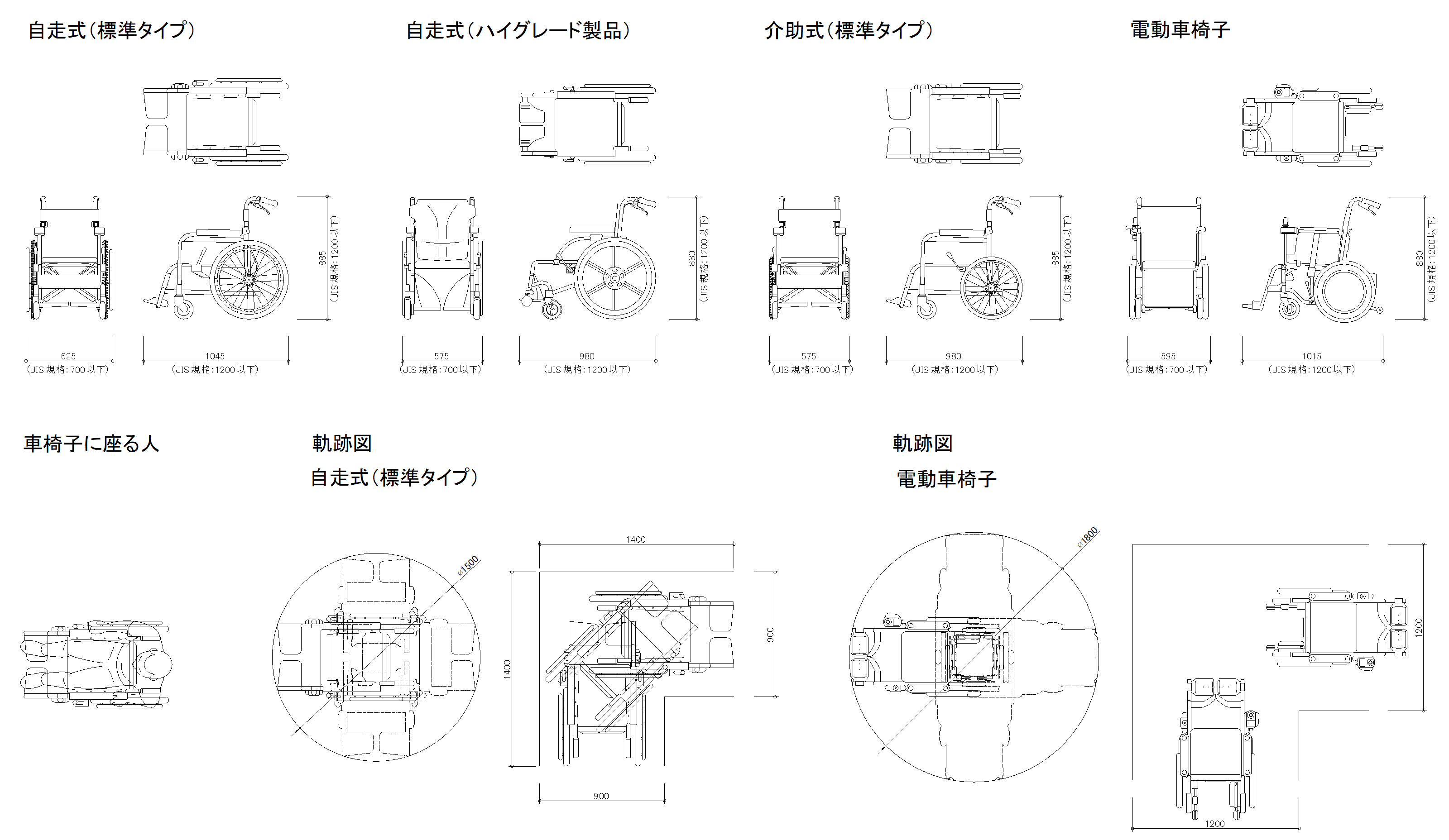 軌跡図は建築設計標準(国土交通省)の寸法を元に作図した参考イメージ図です